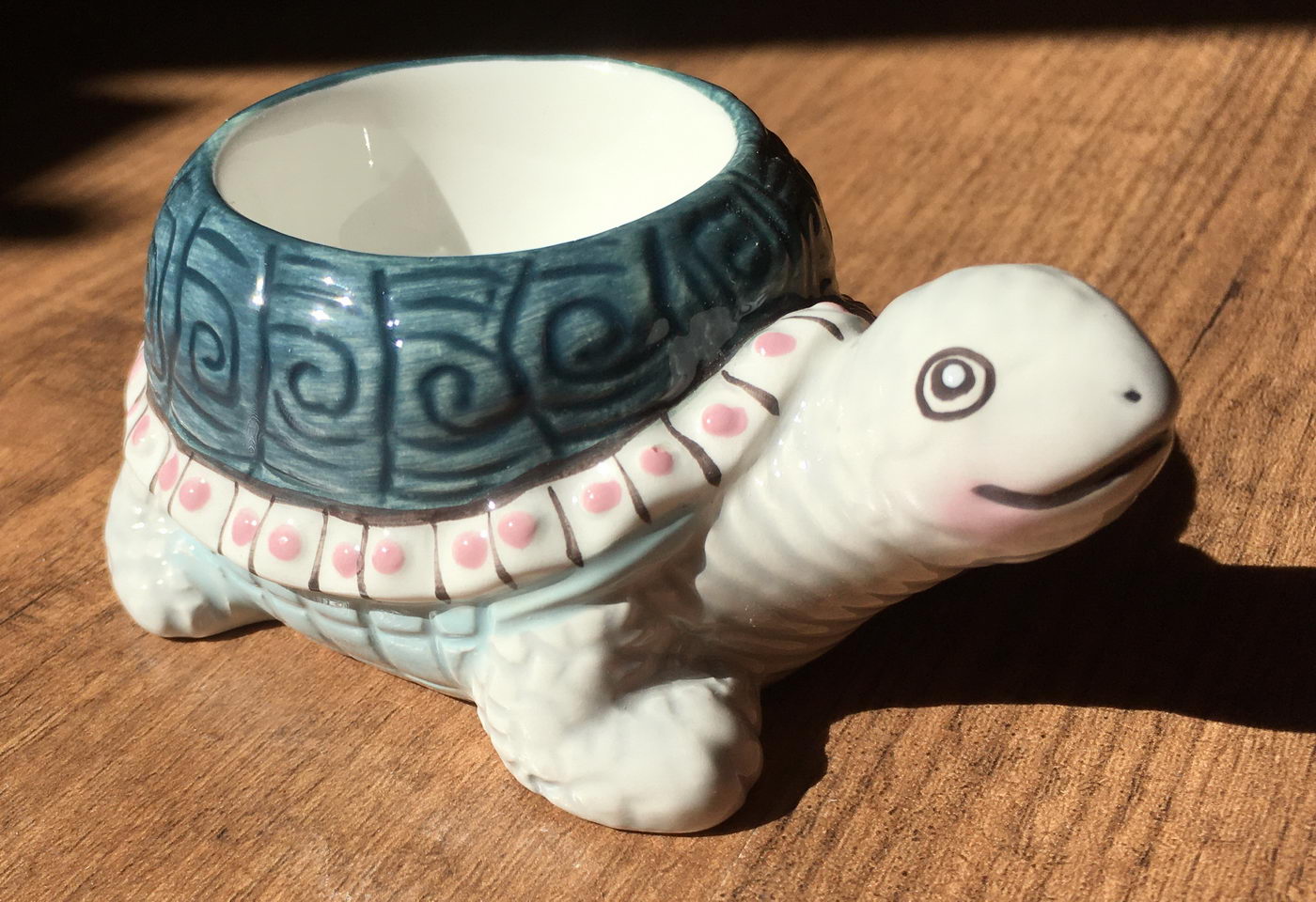 Dies ist ein Eierbecher der Marke Cath Kidston, gekauft 2018 in London.