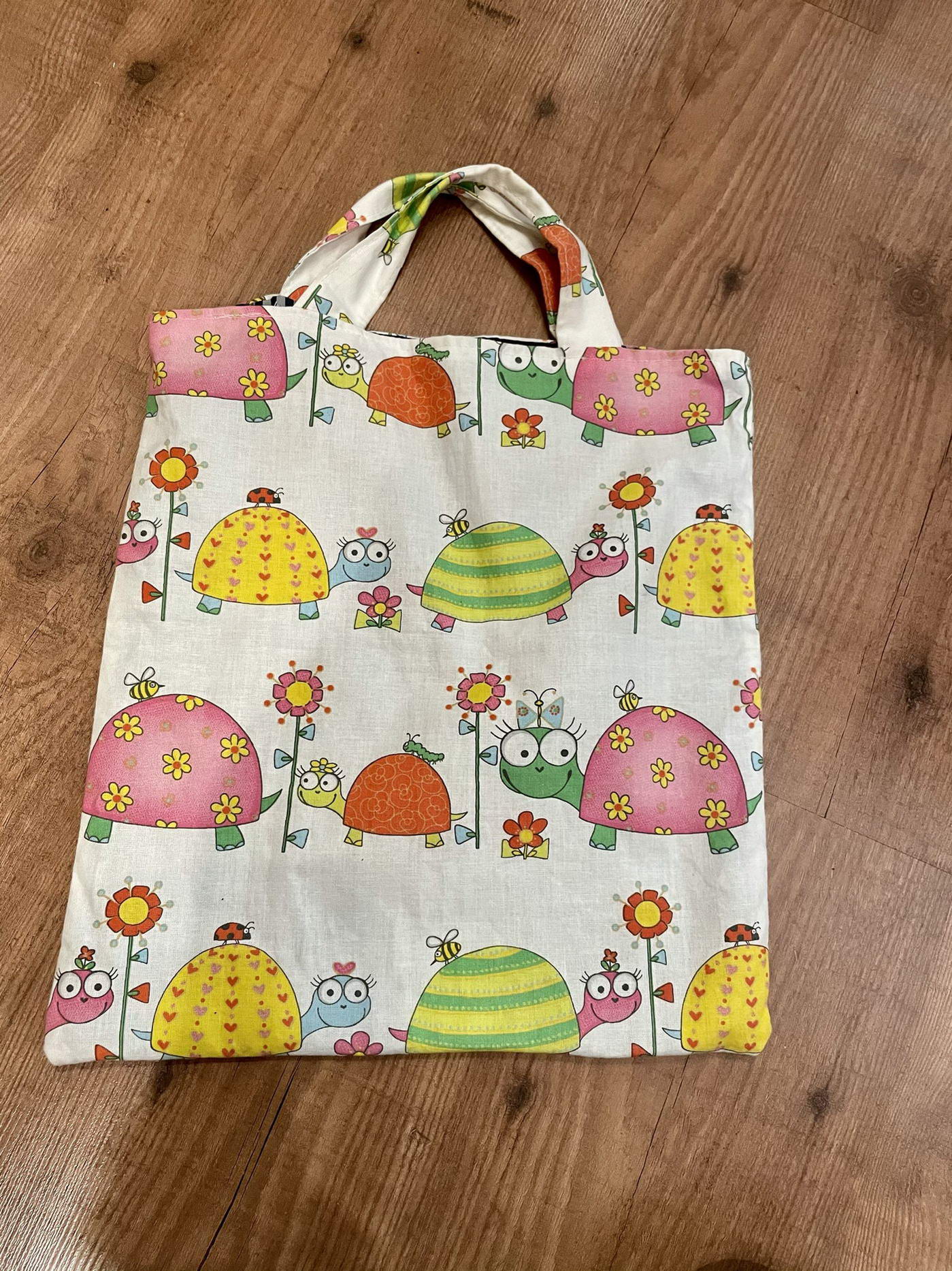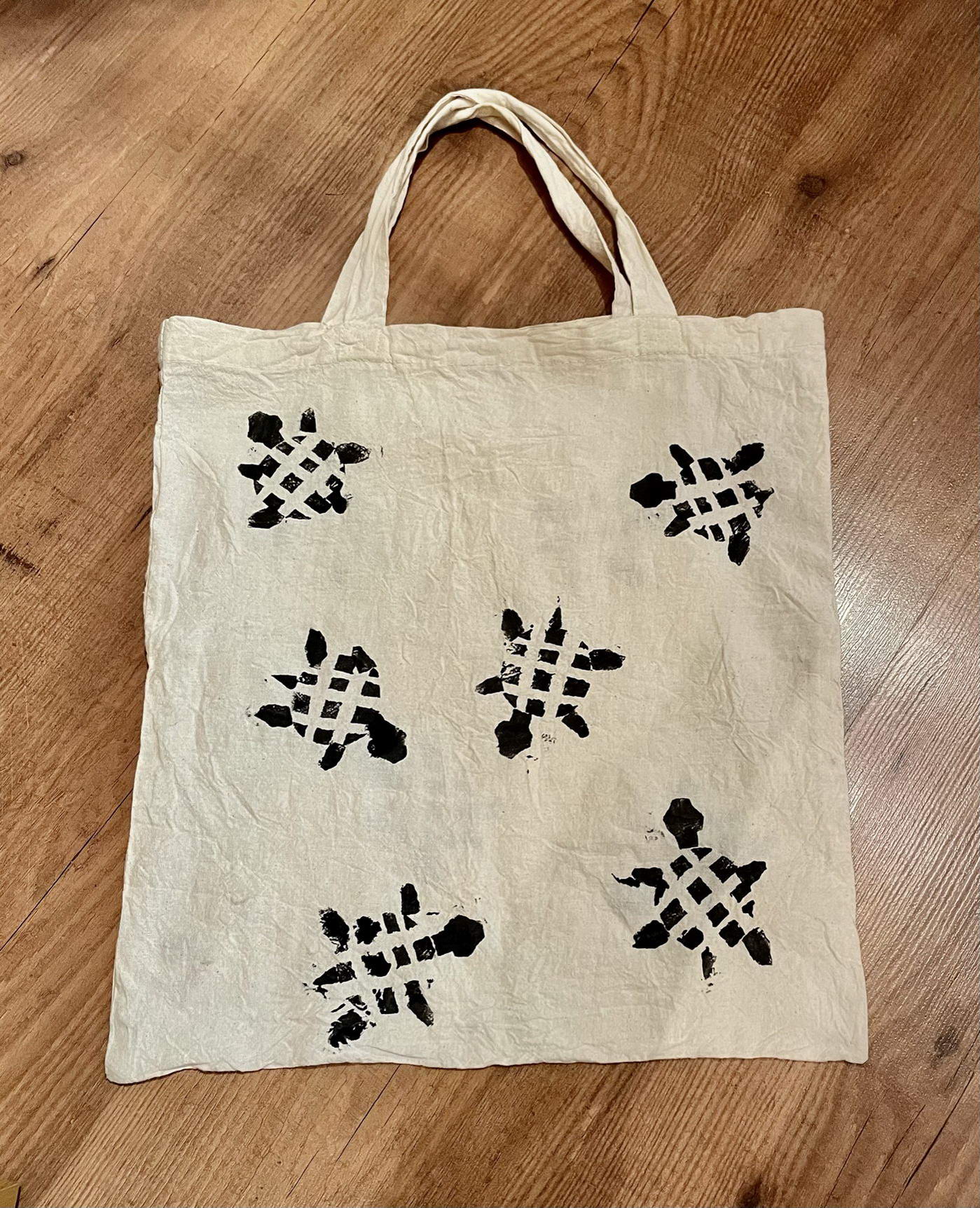 Diesen Beutel habe ich zu meinem 16. Geburtstag von meiner Freundin Anna, die ihn selbst mittels Kartoffeldruck gestaltet hat, geschenkt bekommen.