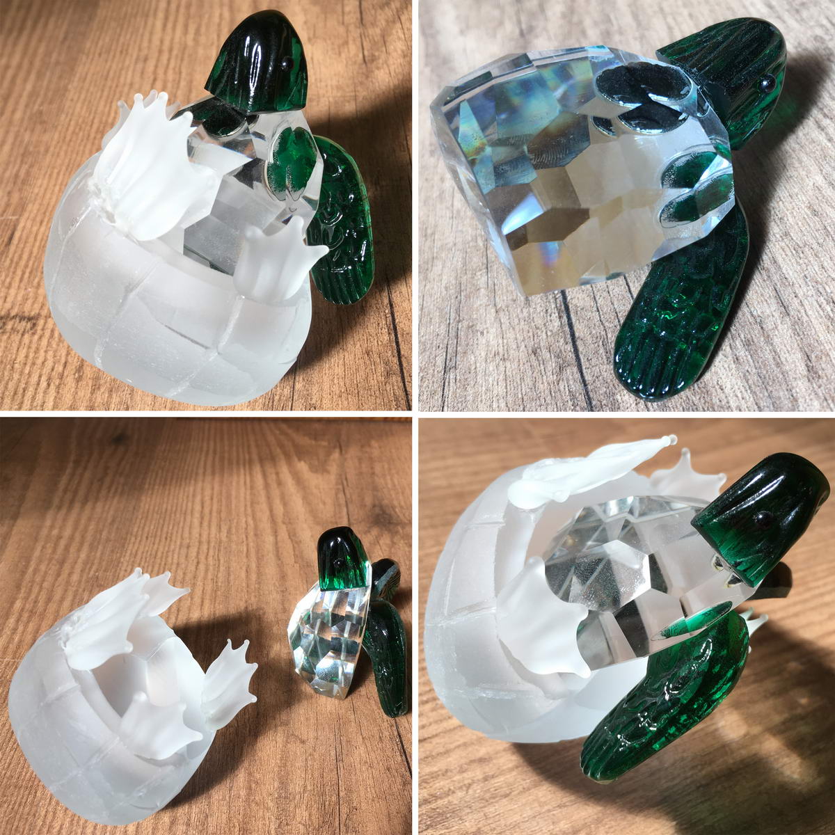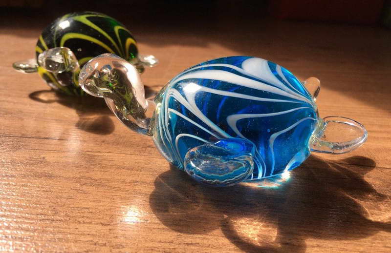 Von Mannis "Glasschildis" mag ich insbesondere die blau-grüne und die bunte Schildkröte mit den großen Augen.