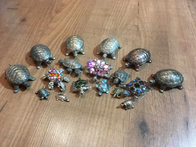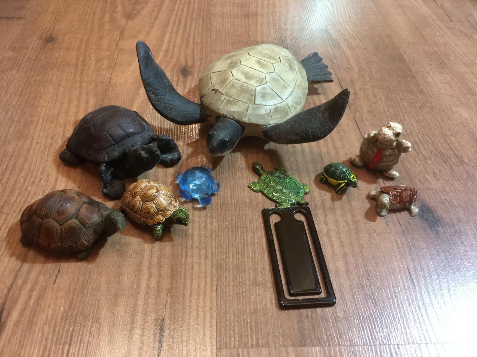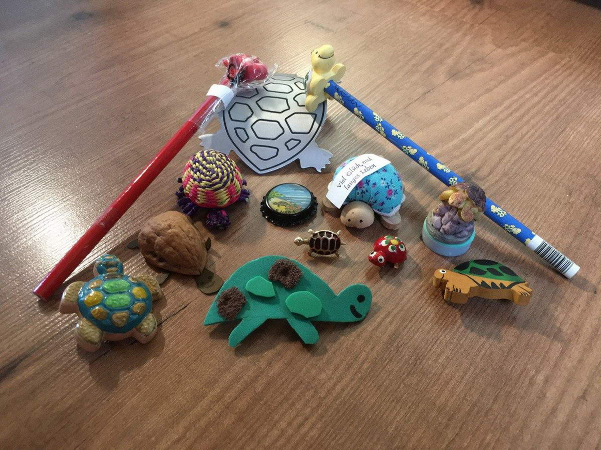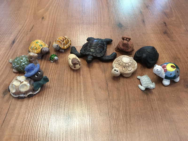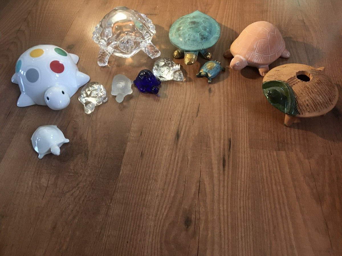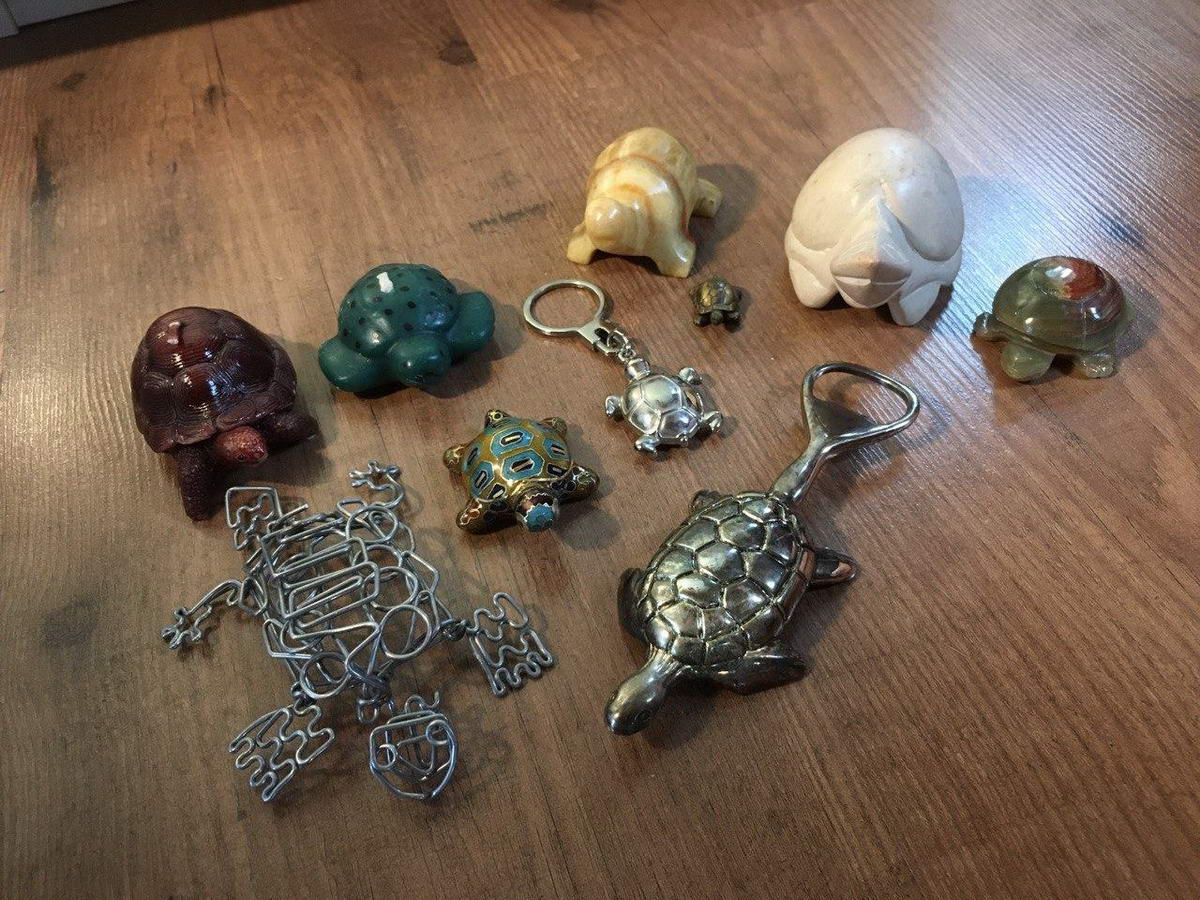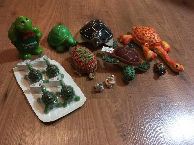 Claudia Goßler sammelte jahrelang Schildkröten: 170 Exemplare aus verschiedensten Materialien sind dabei zusammengekommen. Nun hat sie sich schweren Herzens von ihnen getrennt, wodurch die Schildis bei mir ein neues Zuhause gefunden haben.