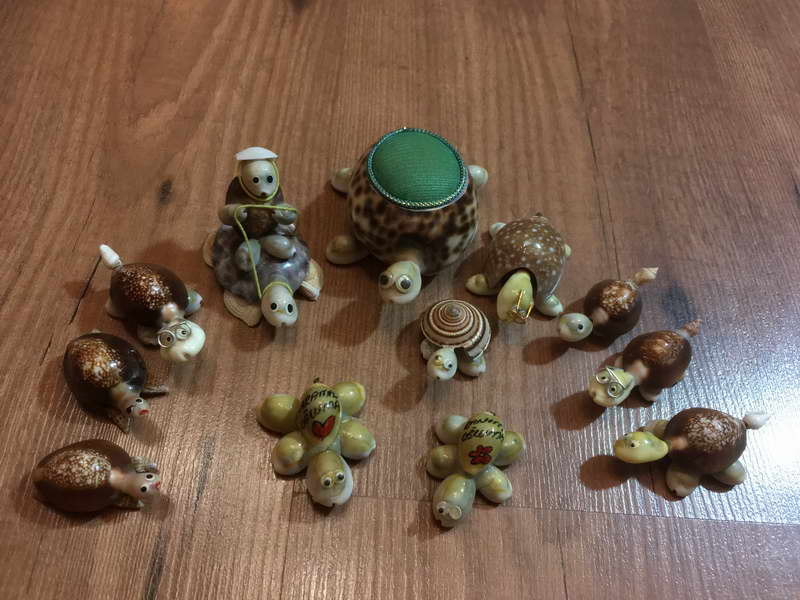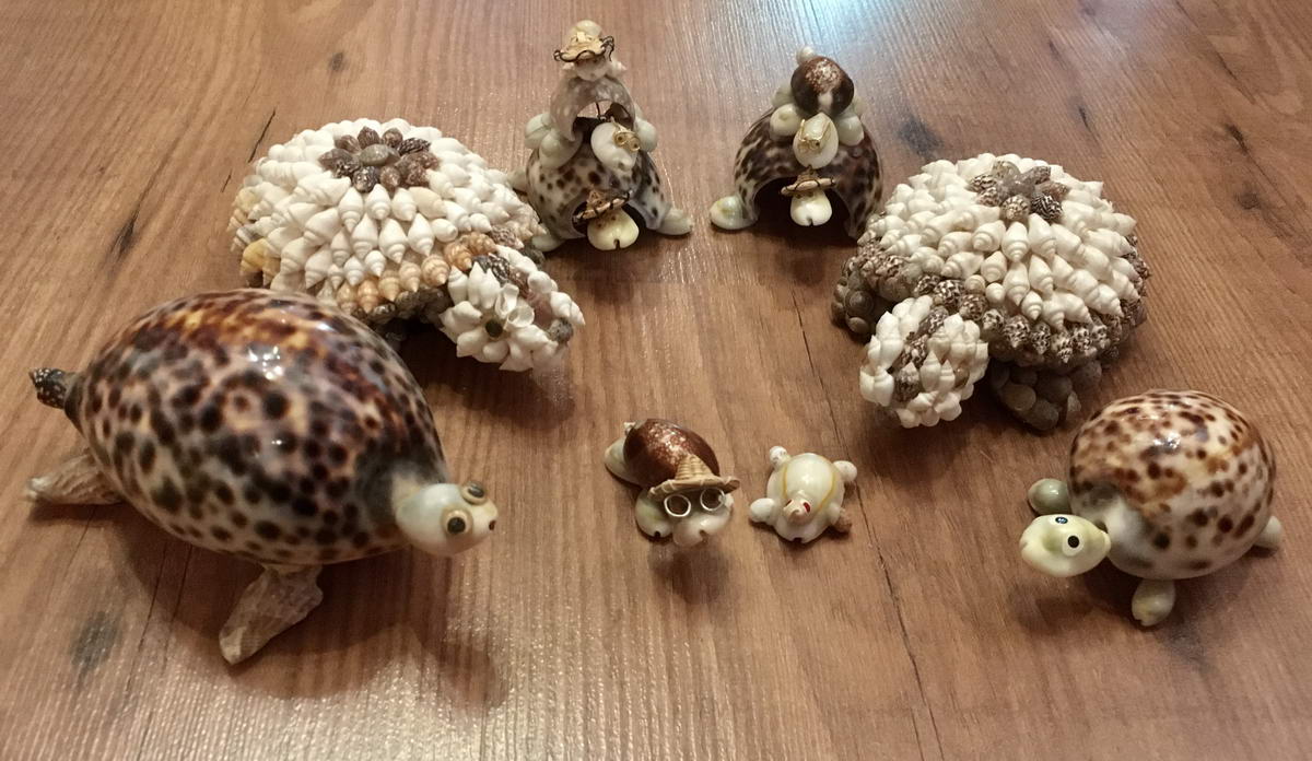 Schön finde ich immer wieder die "Muschelschildkröten", weil sie nie identisch aussehen, sondern individuell gewachsen sind. Jede ein Unikat!