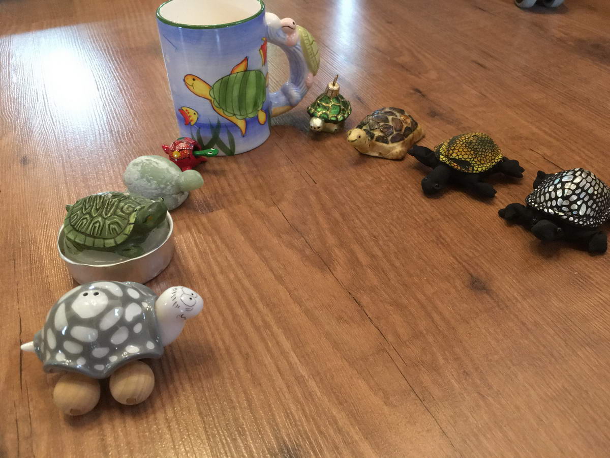 “So nach und nach kamen dann die ersten Schildkrötenfiguren dazu. Zuerst selbst gekauft und nach einiger Zeit immer öfter als Mitbringsel von Freunden und Verwandten.